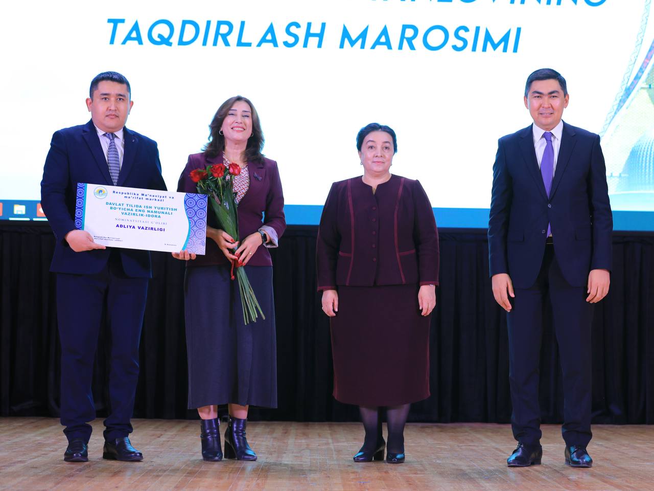 Adliya vazirligi — “Davlat tilida ish yuritish bo‘yicha eng namunali vazirlik-idora” nominatsiyasi g‘olibi!